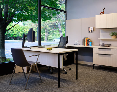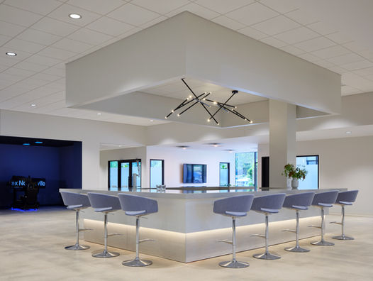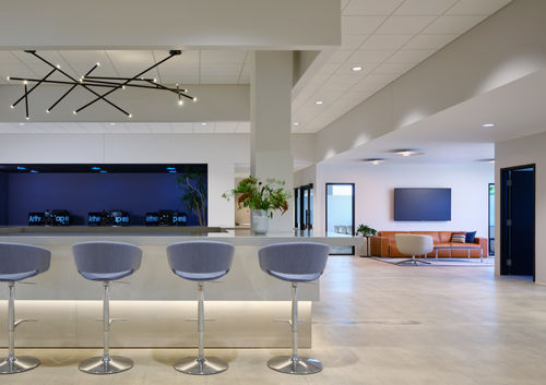 The Arthrex office was designed to be dual purpose- an office for employees and a hospitality space for doctors. A leading manufacturer in medical devices, Arthrex often does demonstrations of their products and invites doctors in to see how they work. This dynamic space includes a large bar and hospitality space that is ready for events, training room, lab, lounges, cafe, meeting and office space. The neutral palette followed the company's brand guidelines, however Kuchar added some warmth using leathers, woods and plantings.