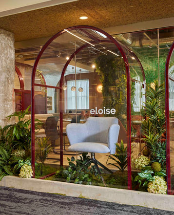 The Nevins showroom was reimagined in 2025 to the theme of "concrete jungle." An abundance of greenery was used throughout to emphasize our human need for nature. New arch features in the entry help emphasize the featured product before customers reach the entry.